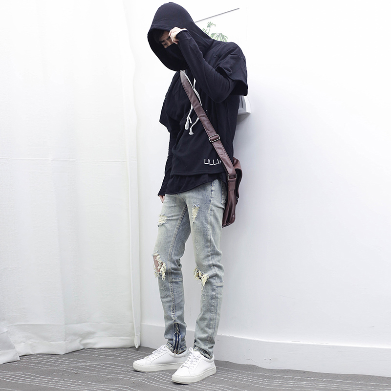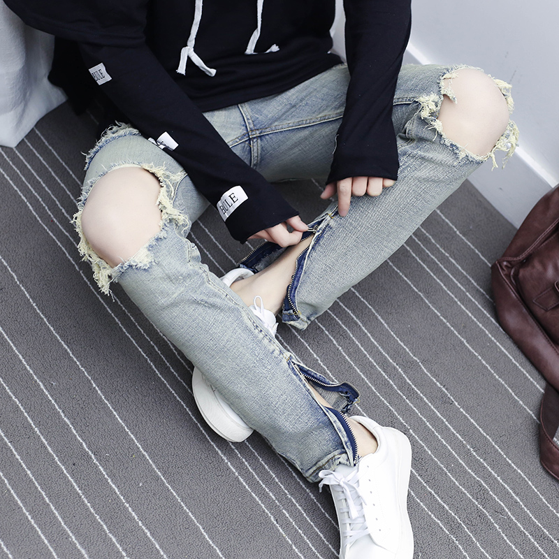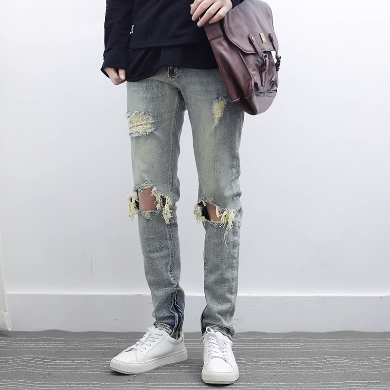 European and American wind high street personality doing old retro doing old beggars pants knees breaking holes and swearing-in jeans Chaumen pants
