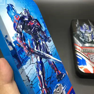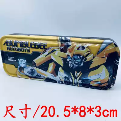 Stationery box pencil box transformers students with double-layer pen box embossed version of the tin box primary school students start school