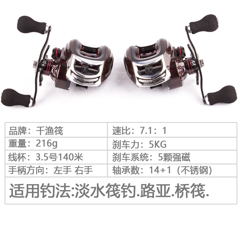 Thousand fishing raft Luya water drop wheel anti-explosion line 14 1 high-speed ratio long-range fishing reel fishing perch with reeling force magnetic brake