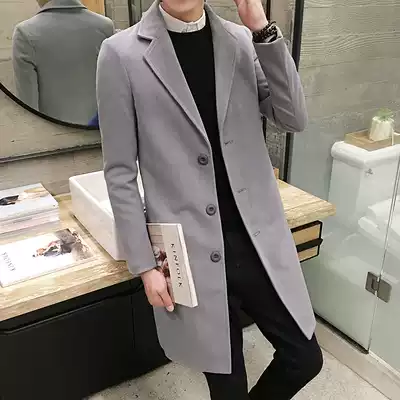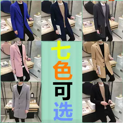 Autumn and winter New Youth trench coat men's wool coat Korean version of the trend handsome coat men's slim long version of the tide