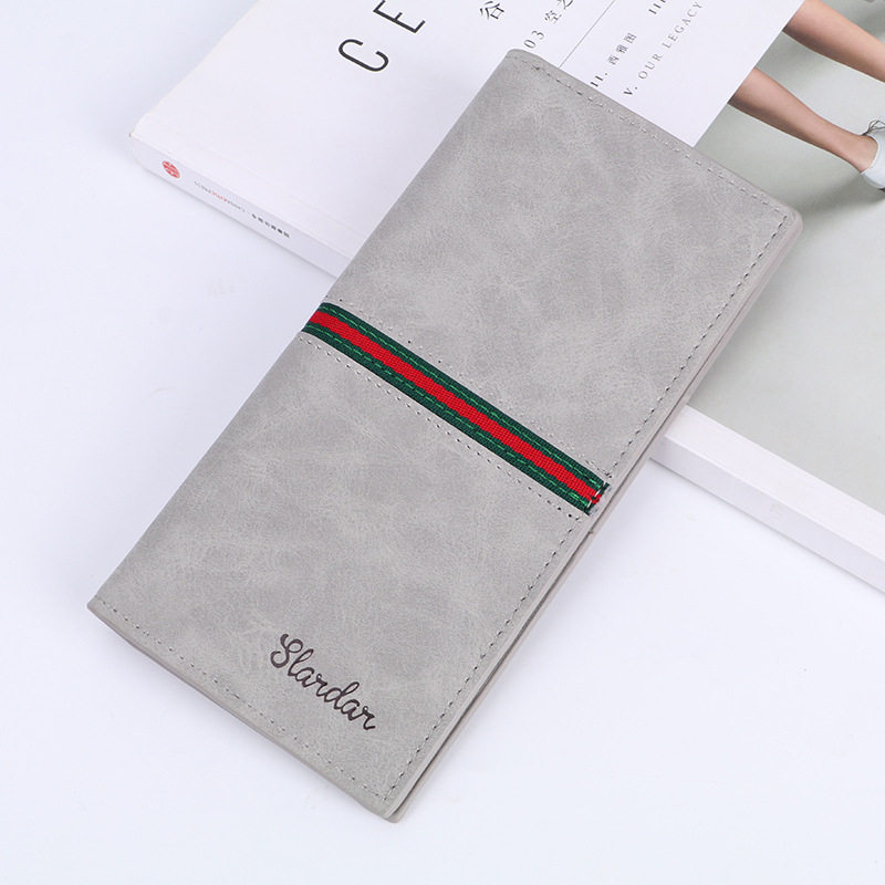 Wallet Men's Long Edition Youth Brief Money clip Japan-ROK version Multi-blocking student personality Soft leather clip ultra-thin wave