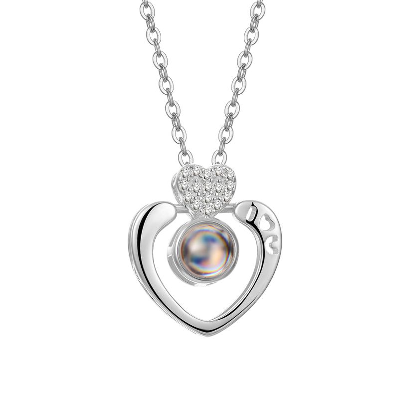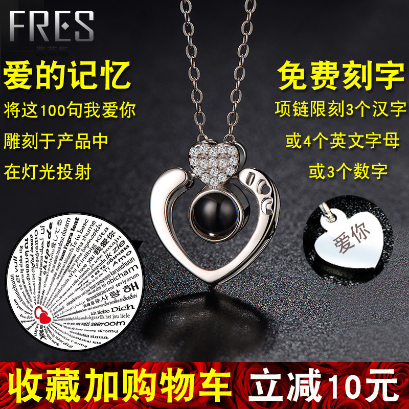 925 sterling silver heart-shaped vibrato with the same love memory necklace female 100 kinds I love you projection birthday gift