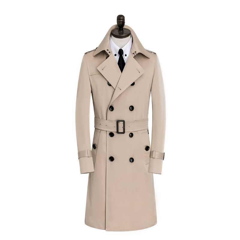 Men's Wind Clothes Long Version Sashimi Autumn winter coat windproof and waterproof Leisure medium Long version Inn trendy double-row buttoned jacket