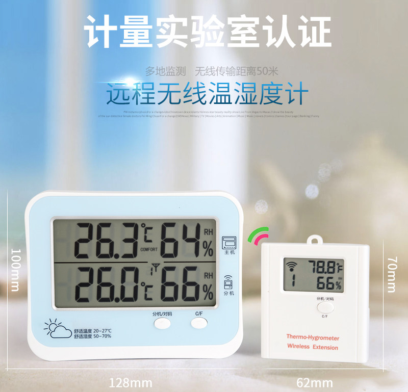 Wireless remote temperature and humidity meter electronic thermometer remote baby room with high precision double temperature and humidity meter inside and outside