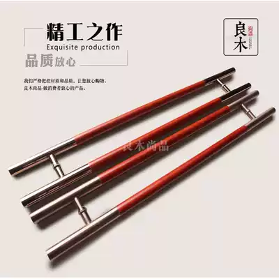 304 stainless steel round tube mahogany large door handle modern solid wood strip lengthy glass door handle customized thickening