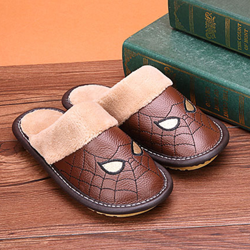 Autumn Winter Non-slip Parent-child Cotton Slippers Indoor Couple Underfloor Cotton Tug Women Soft Bottom Children Genuine Leather Slippers