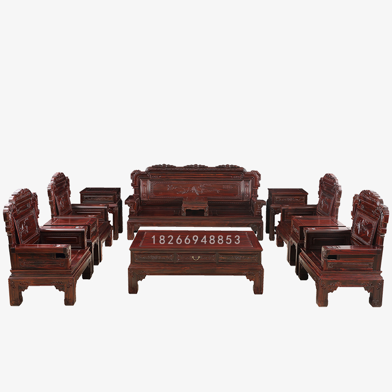 Mahogany sofa high-end Indonesian black rosewood harmonious sofa broad-leaved rosewood Chinese living room solid wood furniture combination