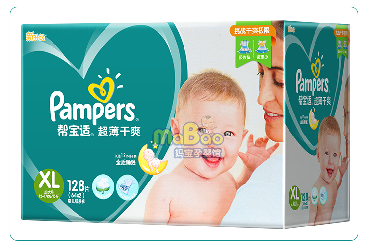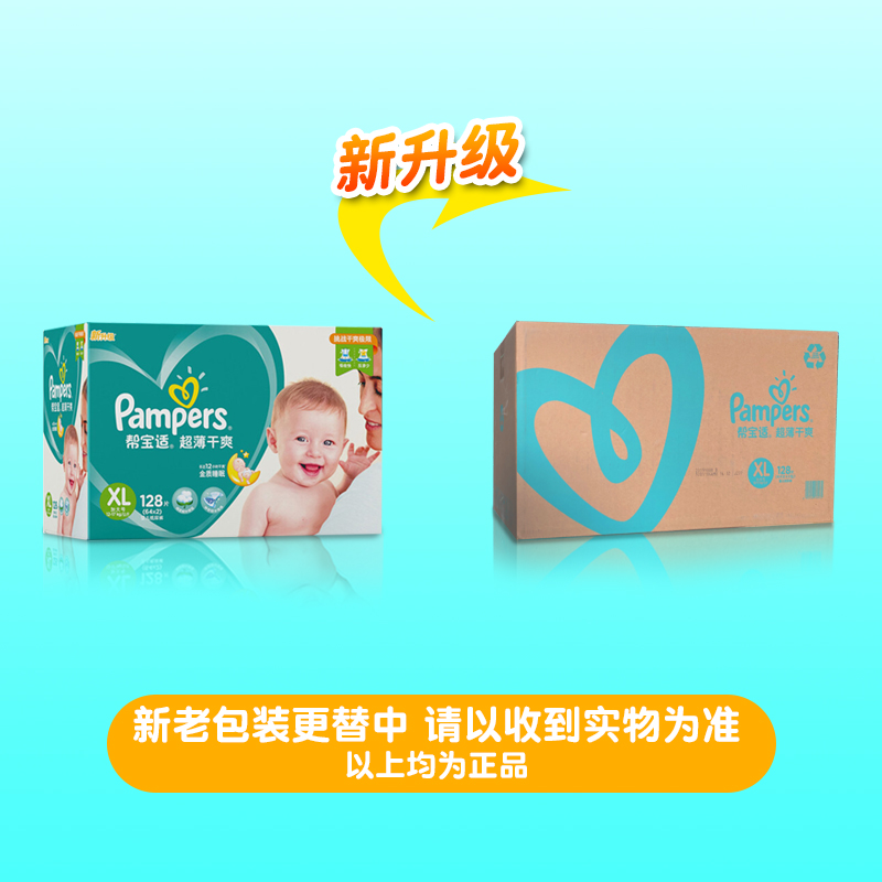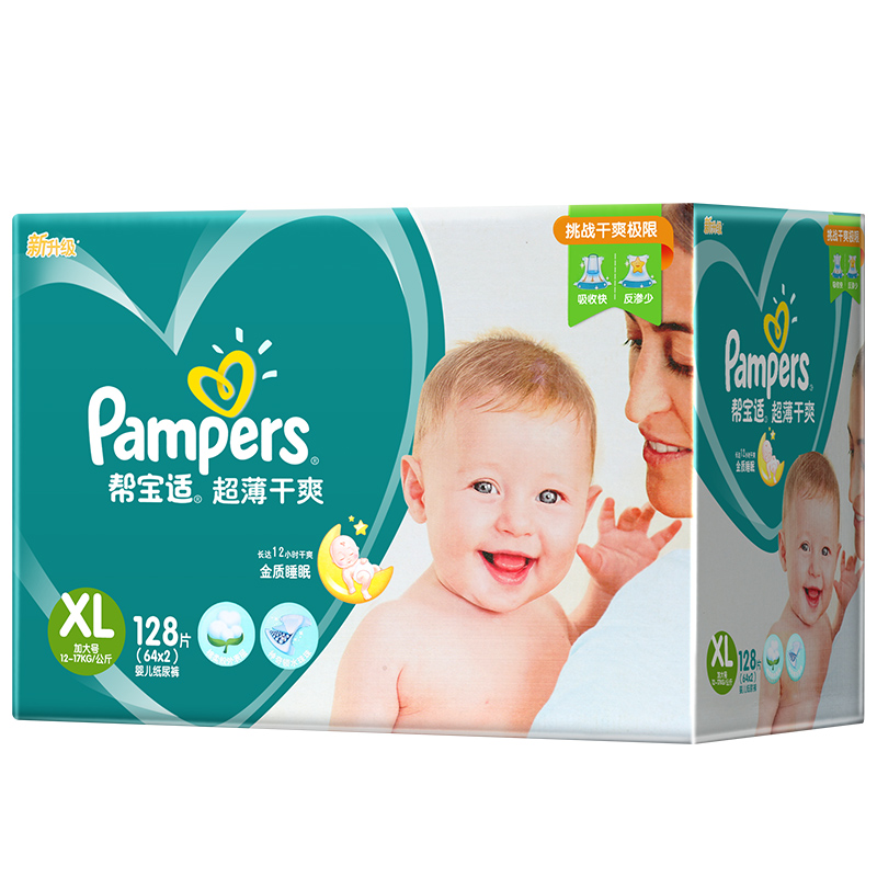 Pampers ultra-thin dry and breathable diapers XL128 pieces to increase infants and children's diapers official flagship store