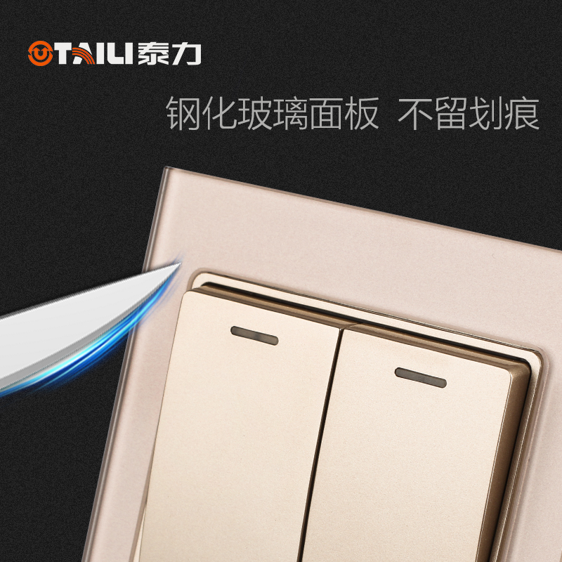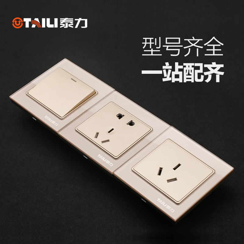 Teli tempered glass switch socket panel 86 type 16A socket Champagne gold household wall concealed with usb