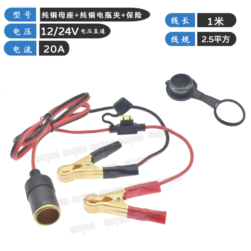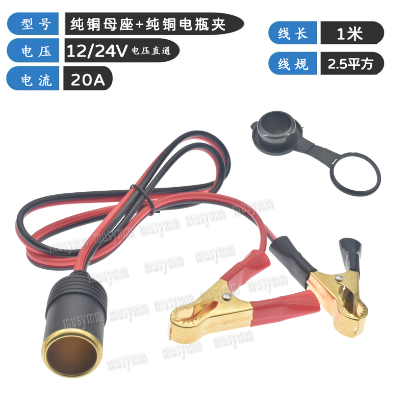On-board charging connector 12V high-power copper wire car clip 24v female head socket extension cord cigarette lighter mother seat