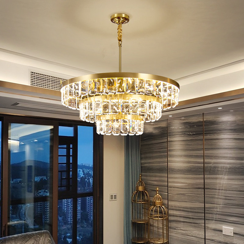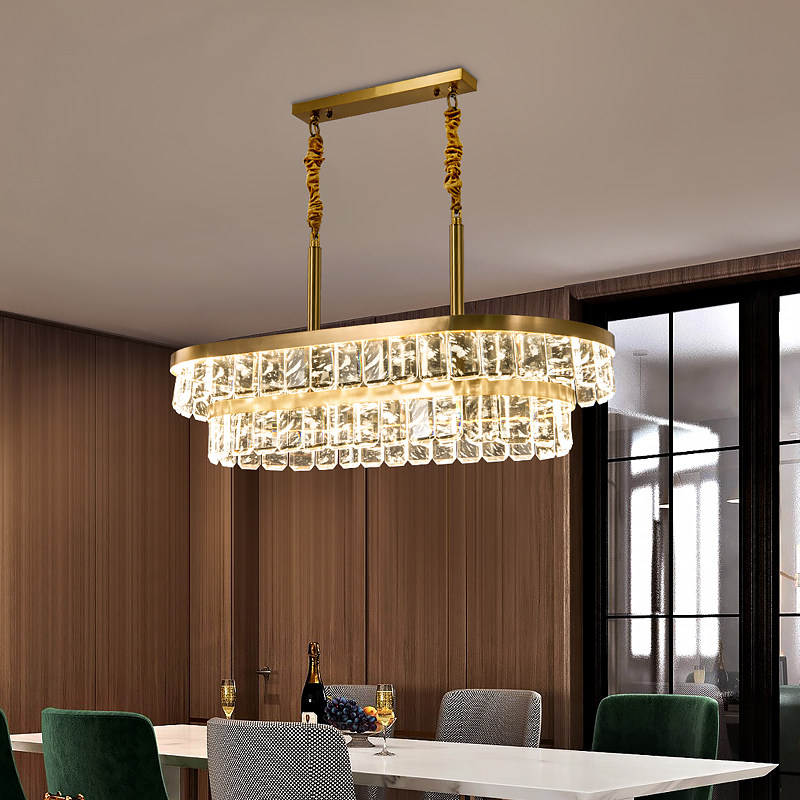 Full copper light lavish hanging light rear modern minimalist water crystal light Living room lamp Main atmospheric dining room Fancy Port Style Villa Lamps