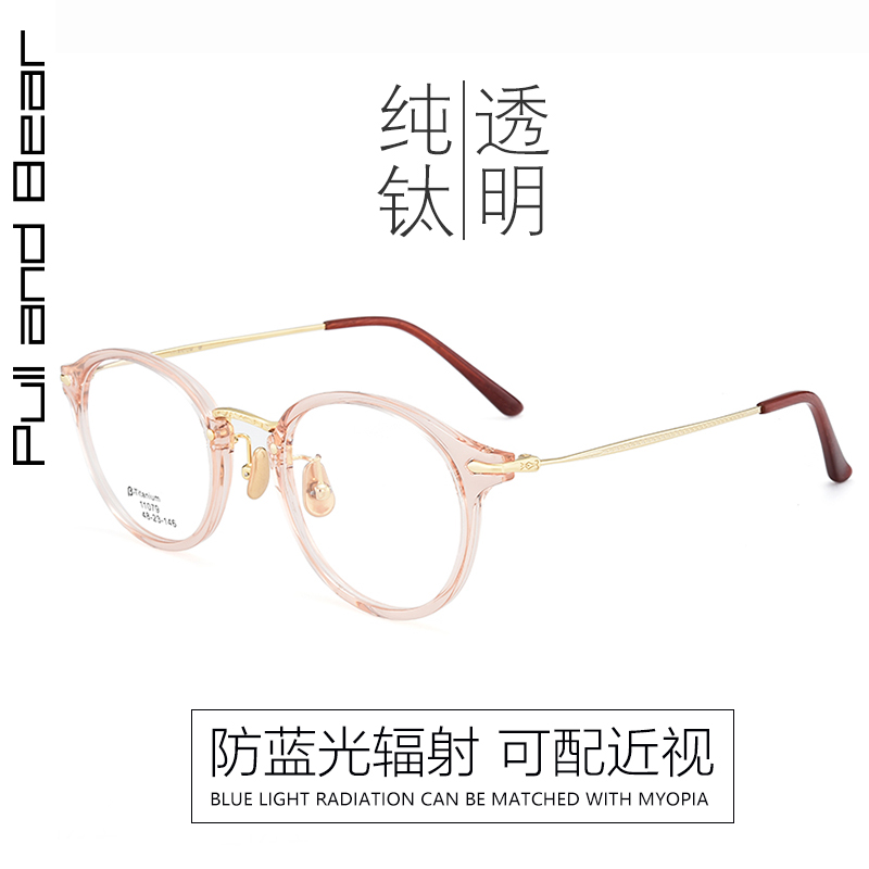 pullandbear transparent color titanium eyeframe female myopia glasses female round face finished product with degree spectacle frame female
