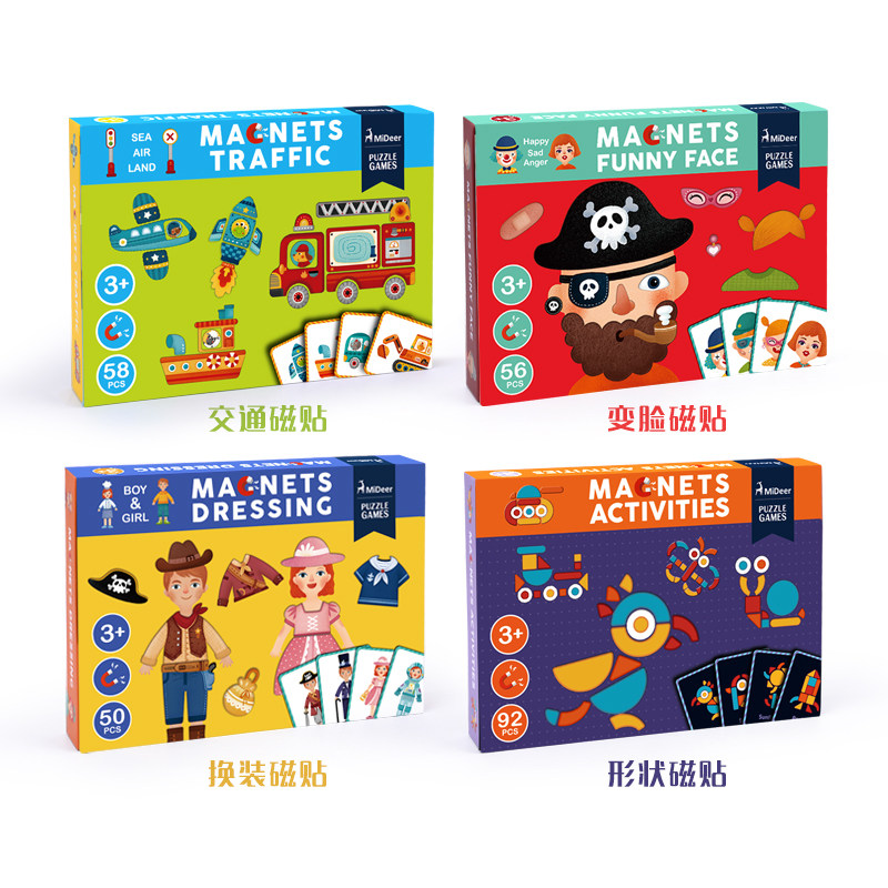 MiDeer Milu Children's Magnetic Magnetic Puzzle Traffic Geometry Changing Face Educational Toys 3-4-6 Years Old