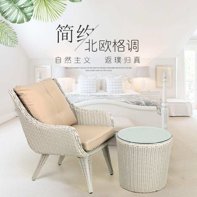 Outdoor Rattan Chair Balcony Handwoven Patio Courtyard Three Sets Casual Tea Table Compositions Indoor Single Rattan Chasha Hair Chair