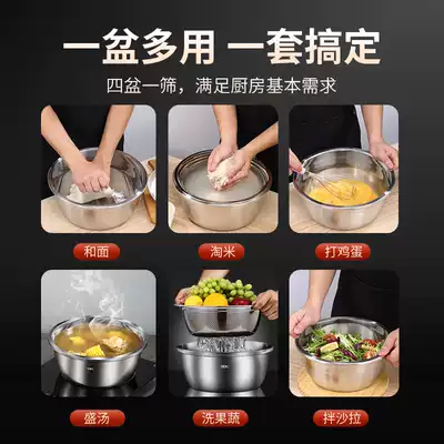 Stainless steel basin for food contact five-piece set (20-26cm) solid basin 26cm leak basin for food contact stainless steel basin five-piece set (20-28cm) solid basin for food contact
