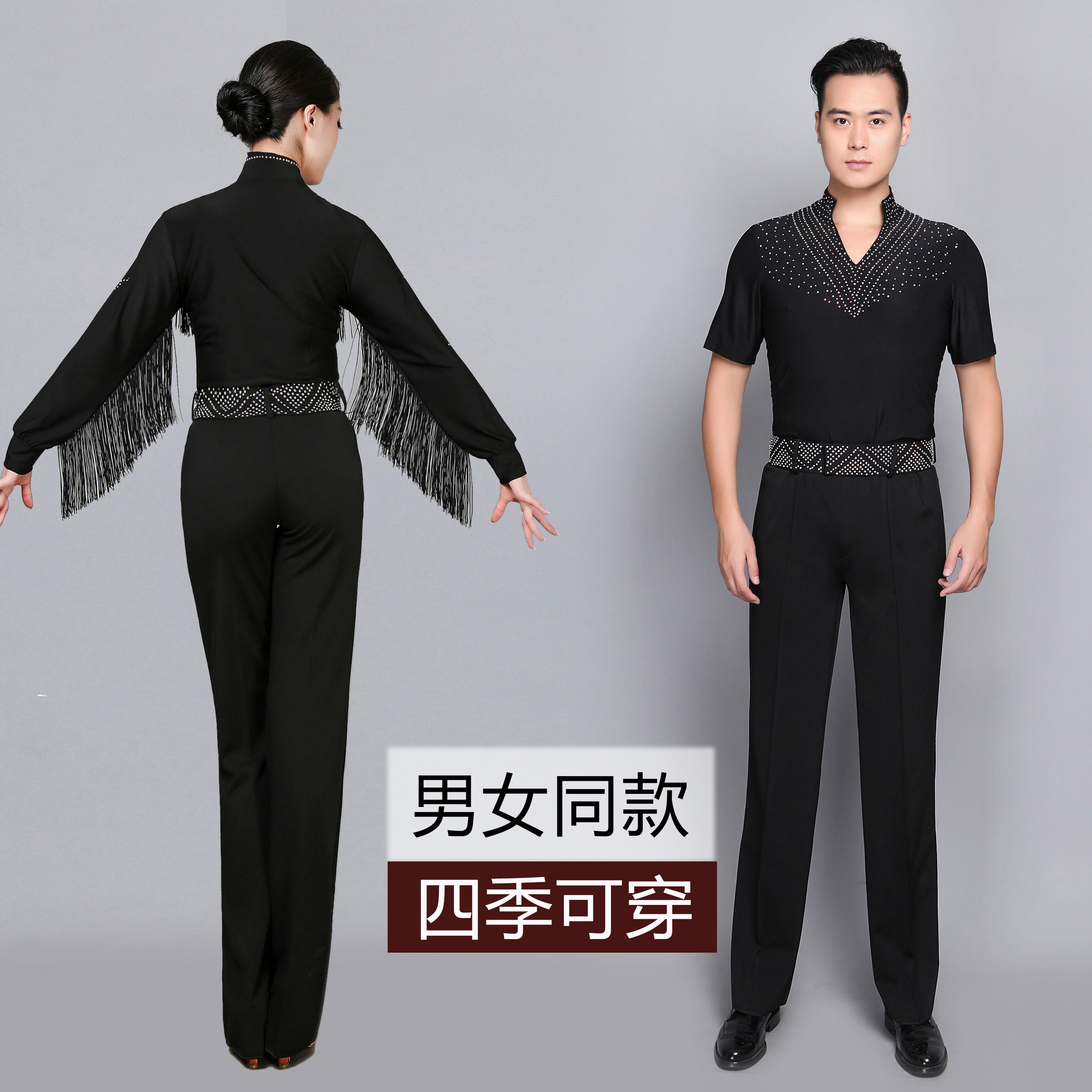 Latin dance pants Women's and men's friendship Modern GB square dance wide leg pants Practice pocket dance men's pants straight tube