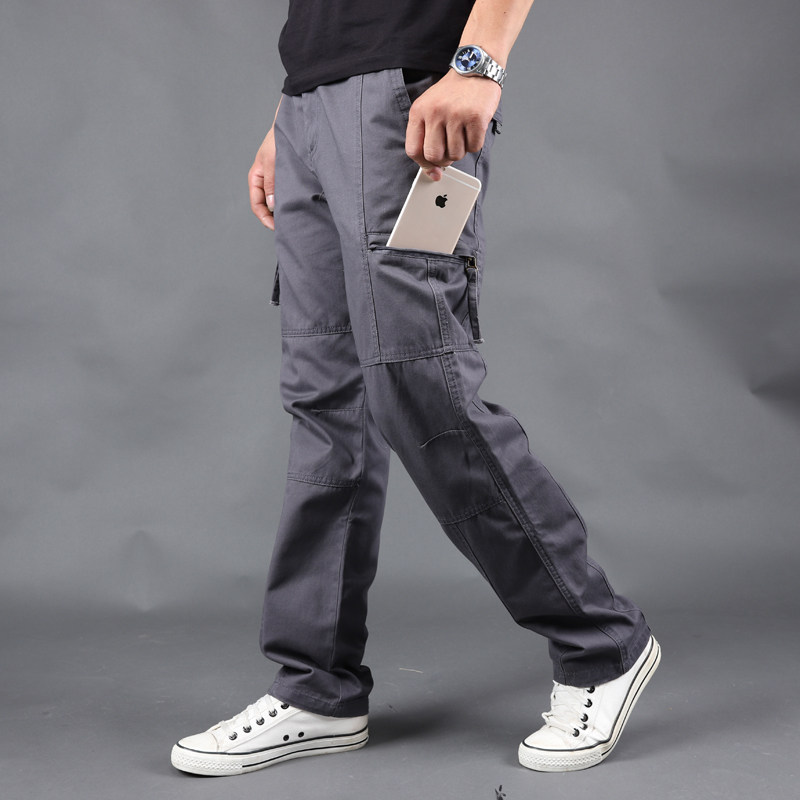 Casual pants men's loose plus size sports trousers elastic waist multi-pocket overalls summer thin trousers men's tide