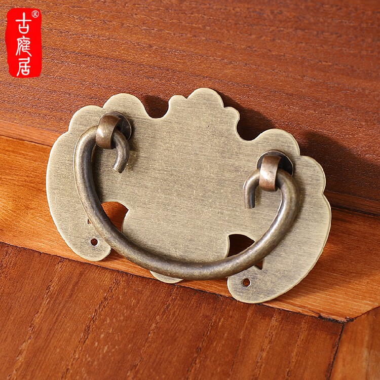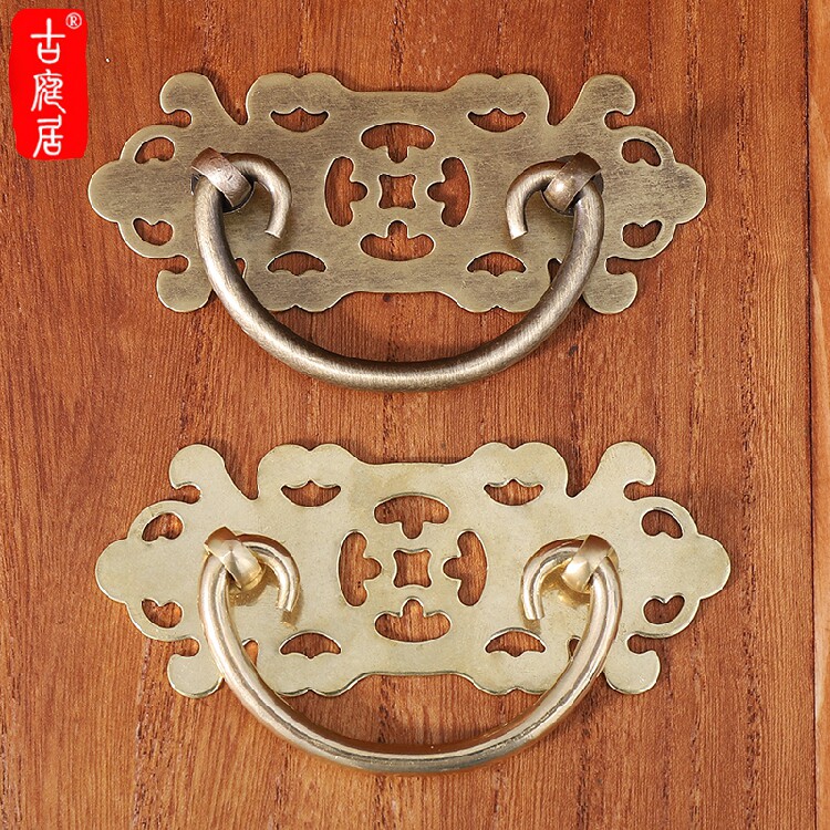 Chinese Ming and Qing furniture antique copper accessories pure copper drawer handle desk bookcase drawer Chinese medicine cabinet double hole handle