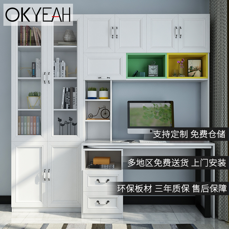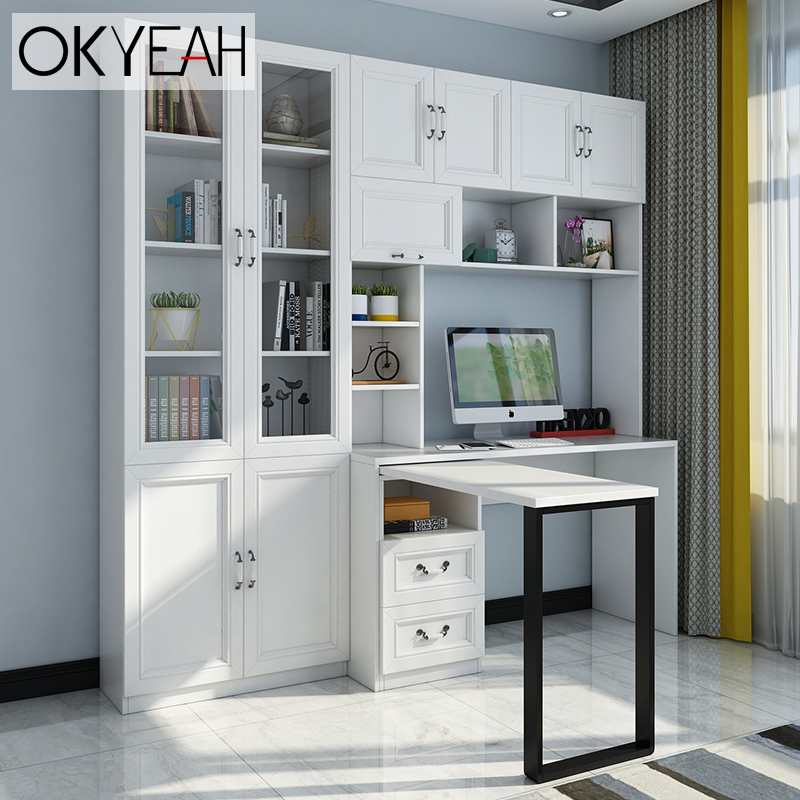 Bookcase desk integrated table combined desktop computer desk brief modern multifunctional bookshelf swivel learning desk