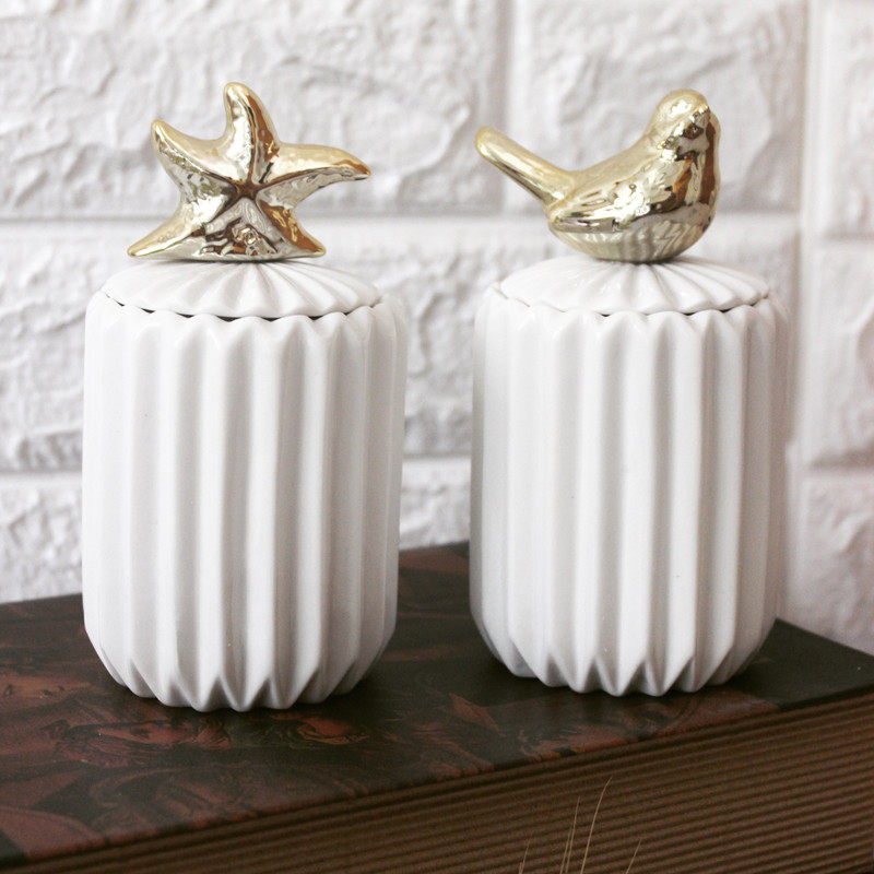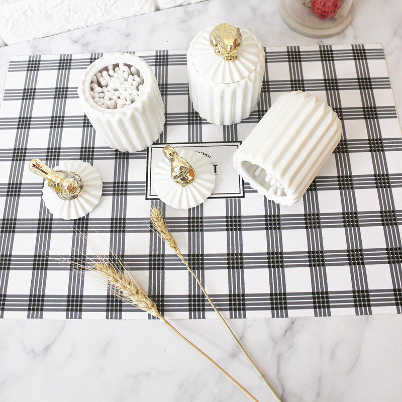 Nordic style cotton swab storage box Ceramic toothpick pot Cotton swab pot with lid Ceramic small pot ornaments small object storage tank