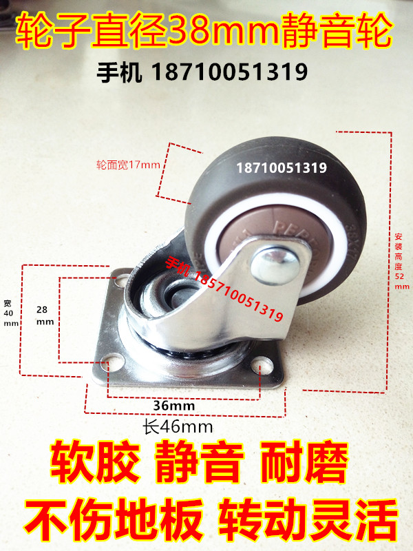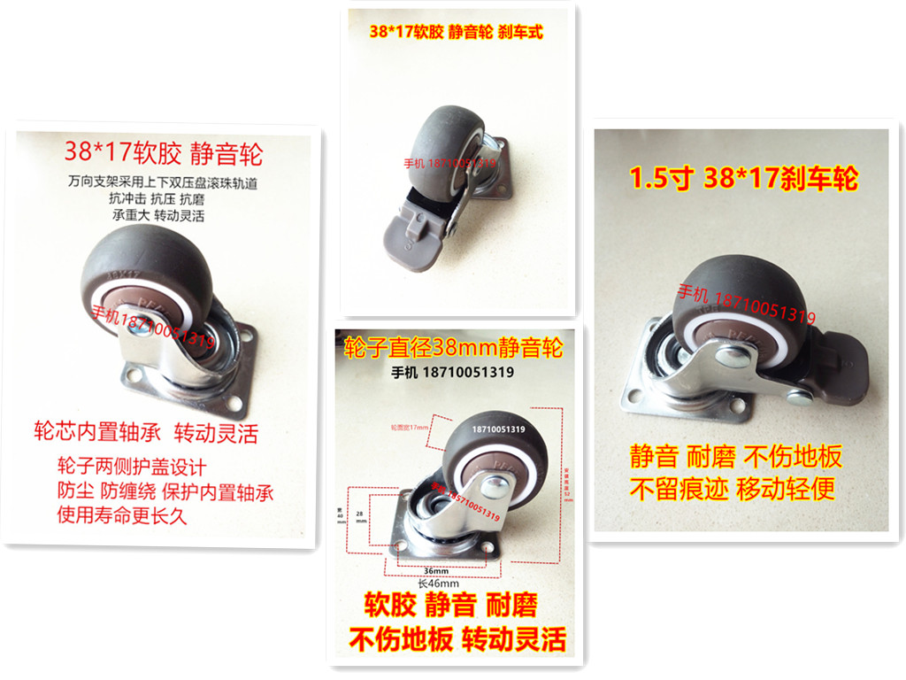 Full 4 rubber wheels mute wheel 38 brake wheel 1 5 inch furniture wheel wheel wheel instrument wheel
