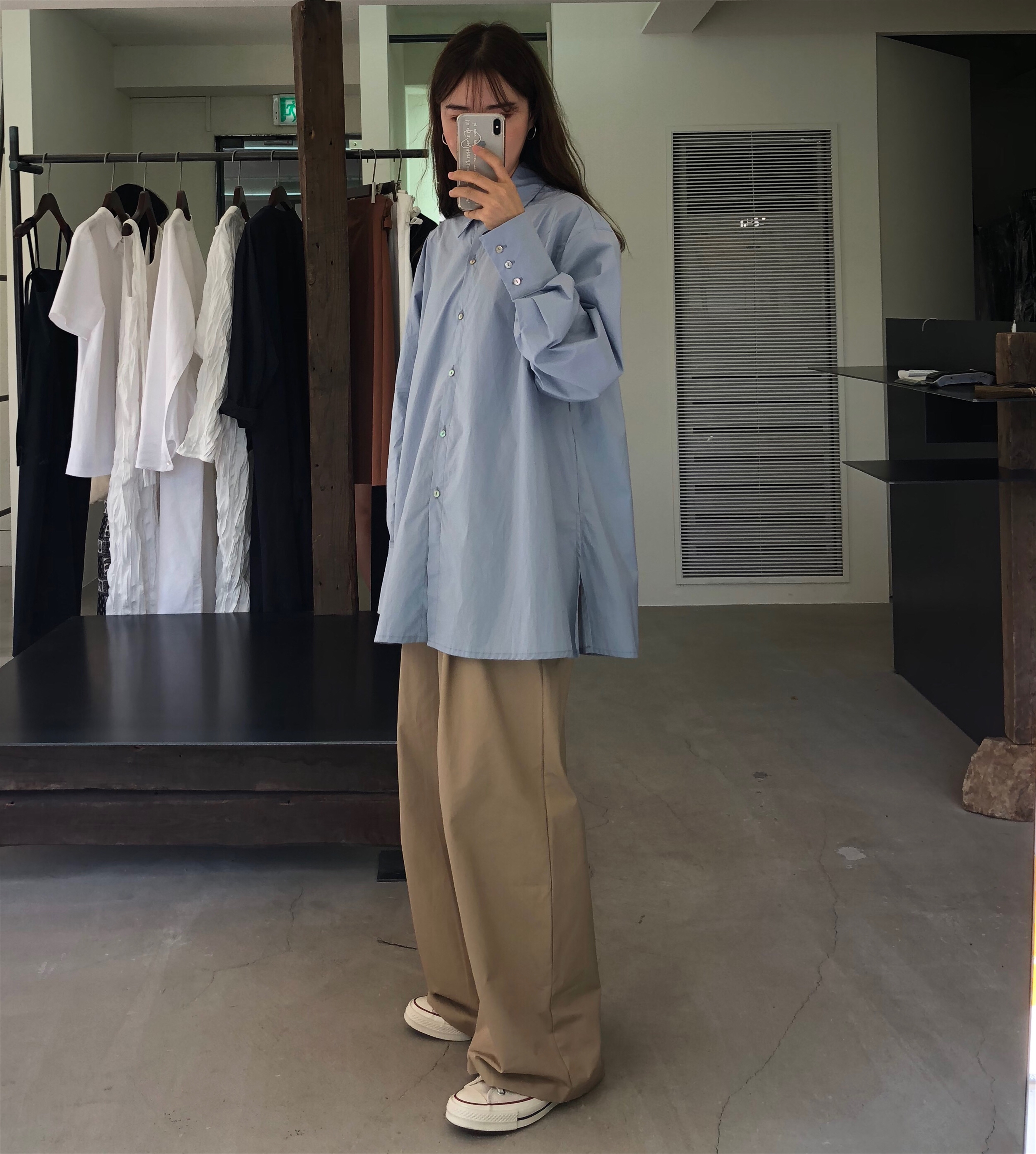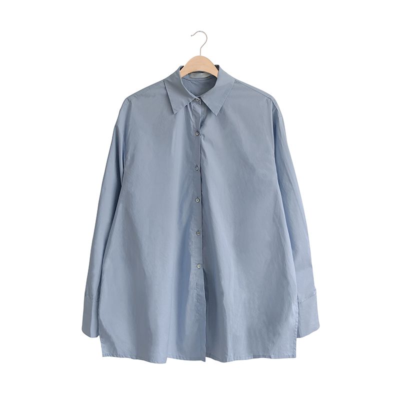 Lonslan homemade 2021 spring and summer new oversize blue side split simple shirt
