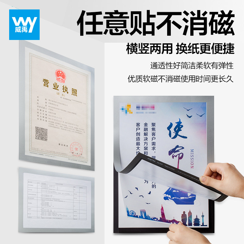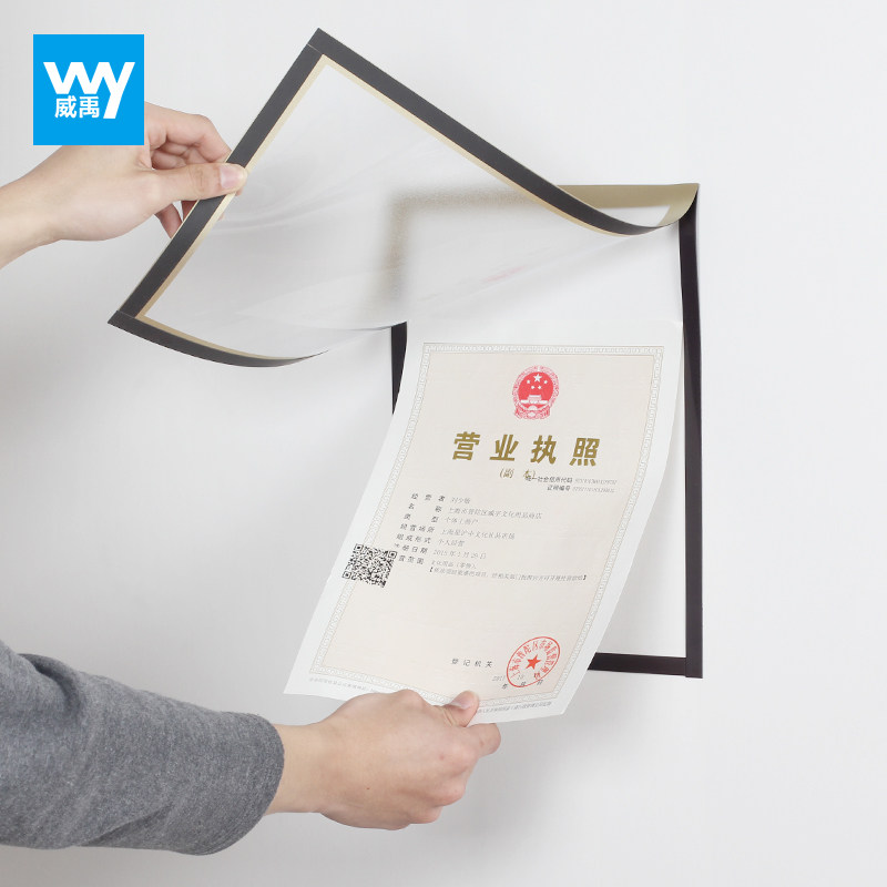 Weiyu new version of the three-five-in-one industrial and commercial business license protective cover a3 original a4 copy soft and hard magnetic wall stickers A5 glue cover certificate license cover intermediary billboard real estate information display card