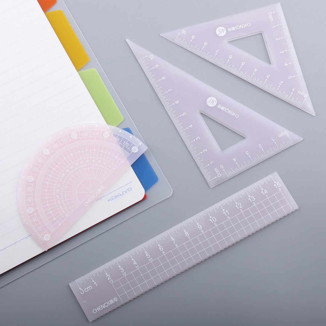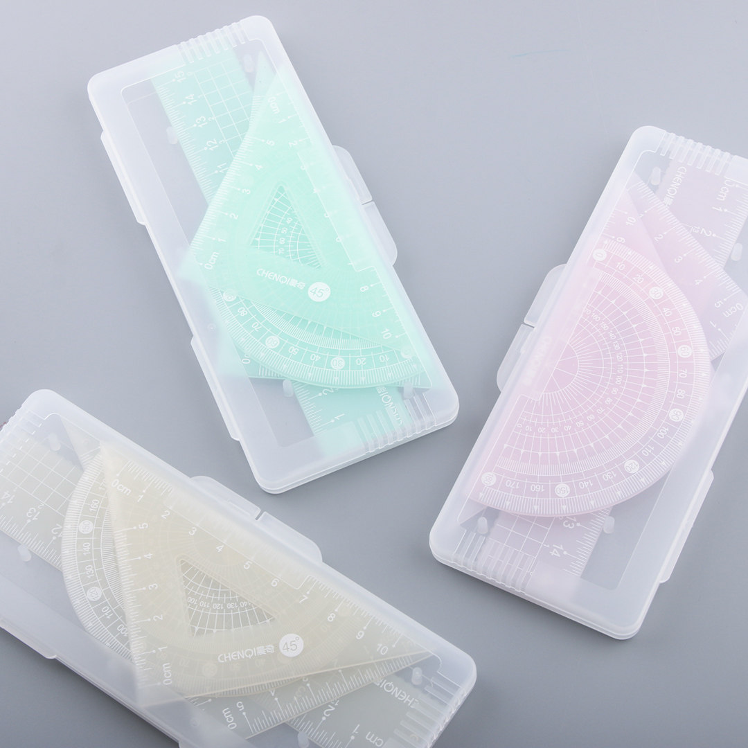 Morning chic light colour cookie minimalist unimprinted wind frosted sleeve ruler student drawing of four sets of geometric ruler triangular ruler