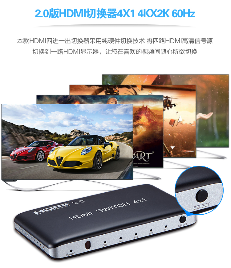 TV HD HDMI Interface 10% Four HDMI2 0 Edition Four-in-Out Support 4K 60Hz Junction Switcher