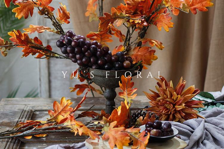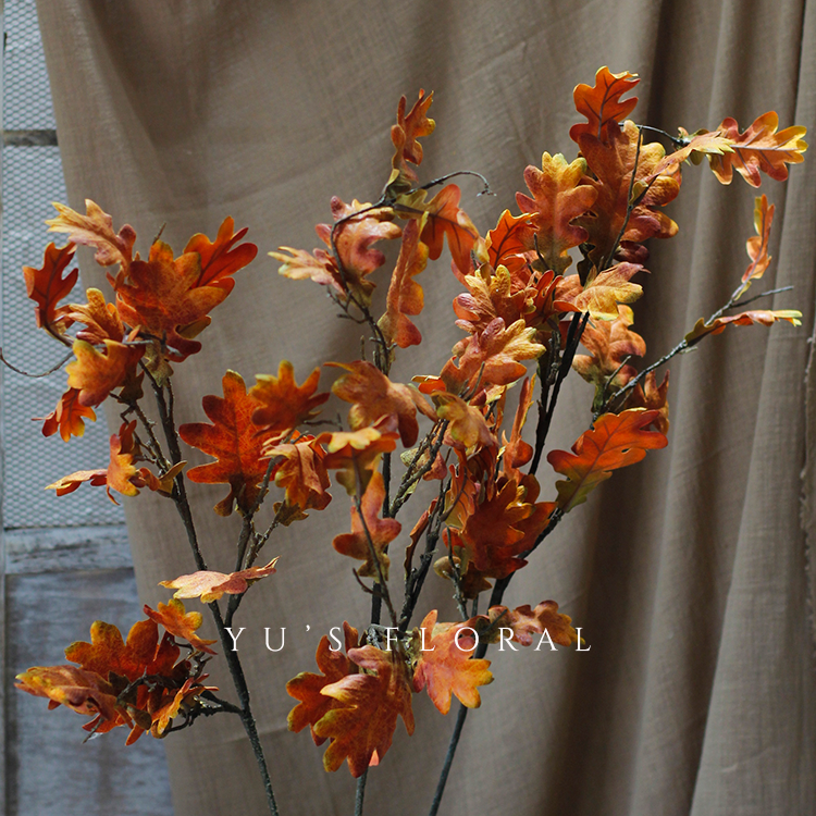 Simulation plant oak branches and leaves autumn color system yellow leaves floral landscaping shooting wedding decoration flowers