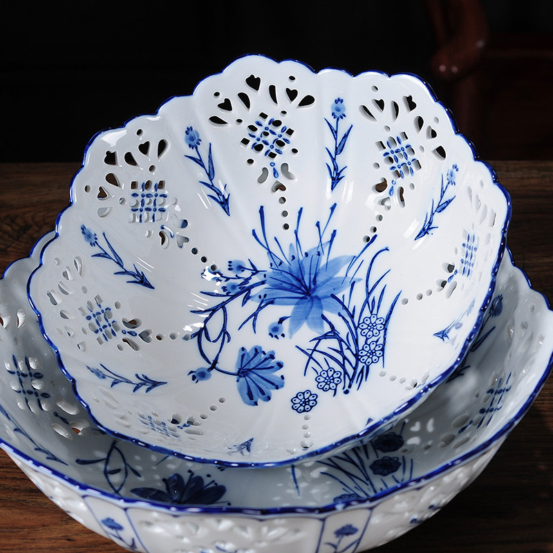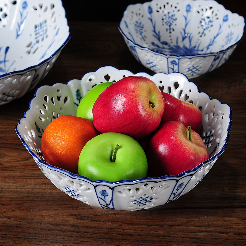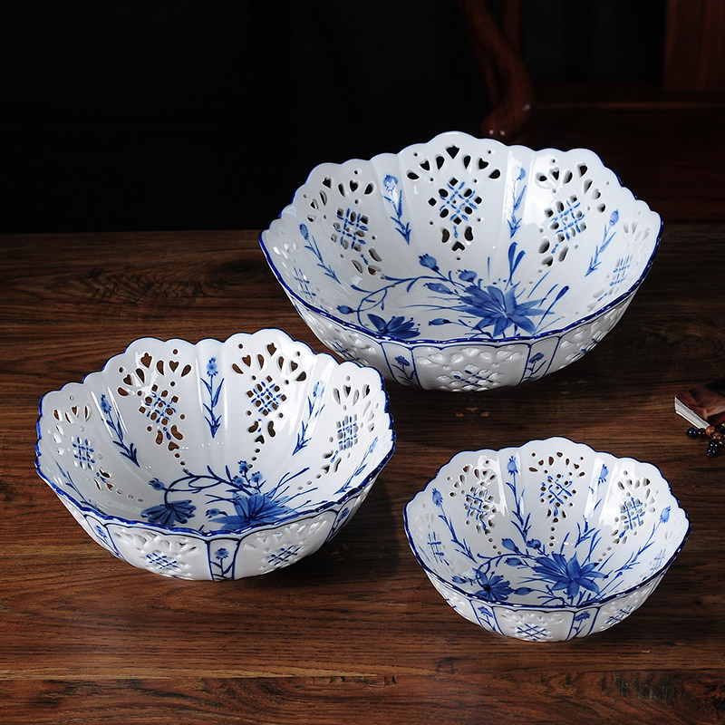 Hand-made Chinese ceramic ceramic elegant and quaint fruit disk hand-painted high temperature glaze and three pieces of fruit pot