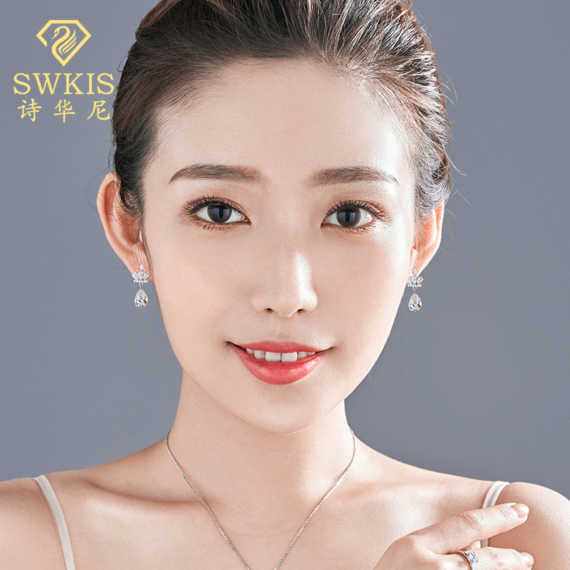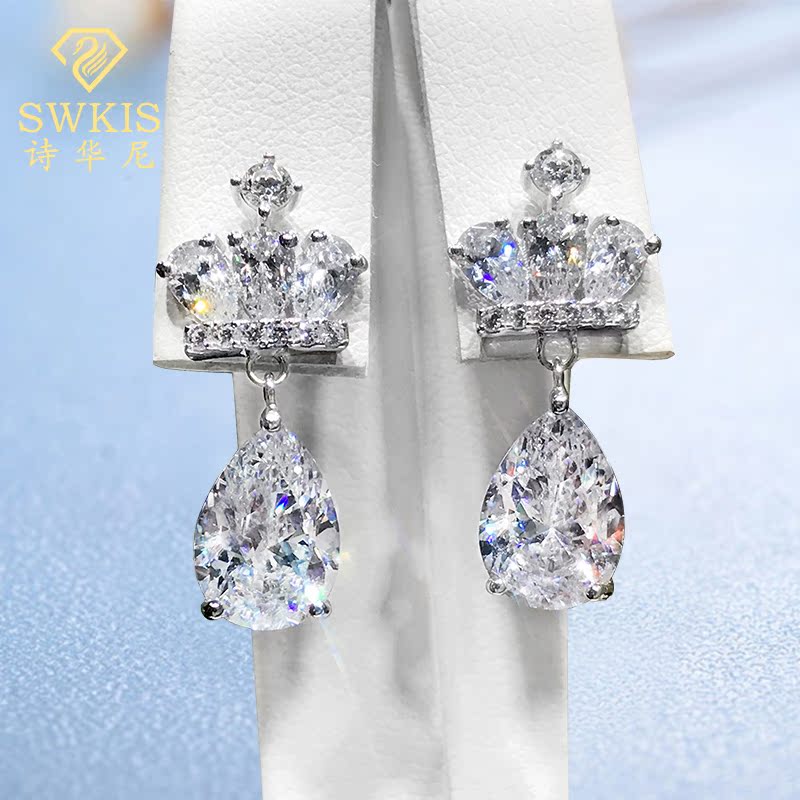Crown drop ear pin pear-shaped 925 sterling silver jewelry plated 18K gold female earrings earrings temperament net red niche design