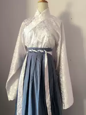 Saujun original Hanfu cross-collar big sleeve shirt jacquard cotton white loose wedding dress men and women with spring and autumn spot