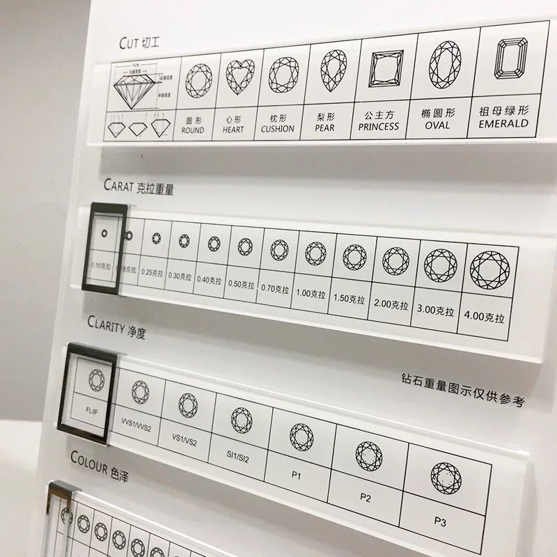 White Jewelry Diamond 4C Card Display Card Acrylic 4C Board Nude Drill Appraisal Cheroi Grader Graded Sales Prop
