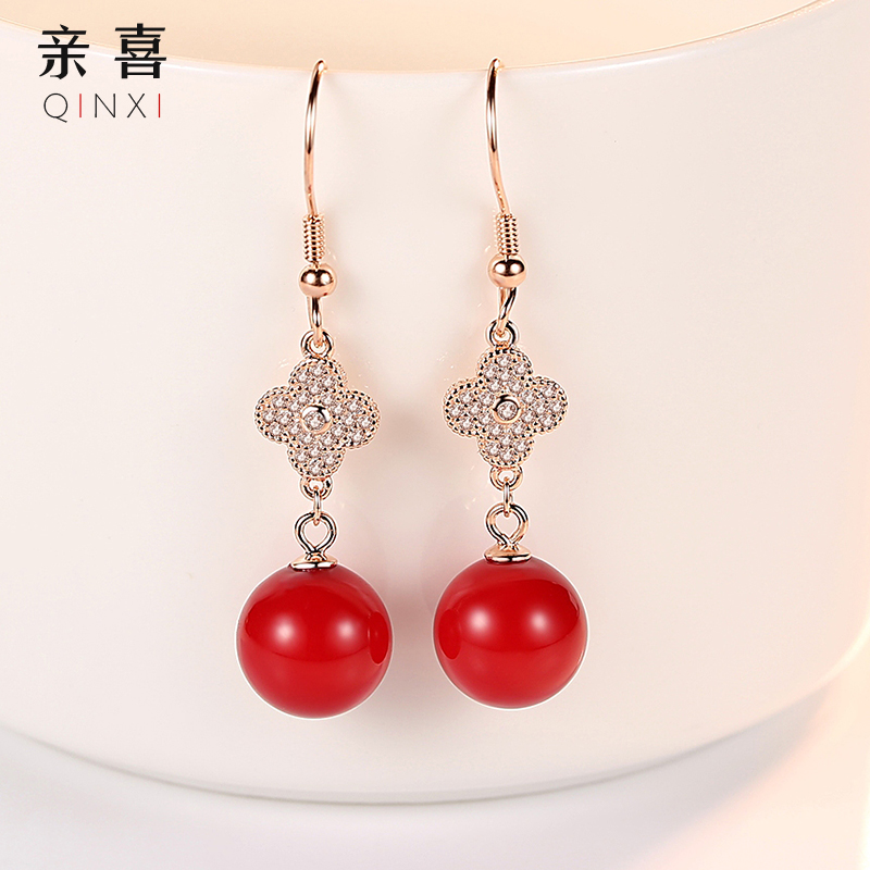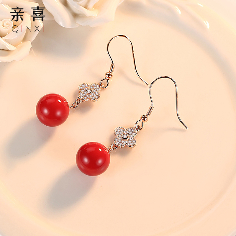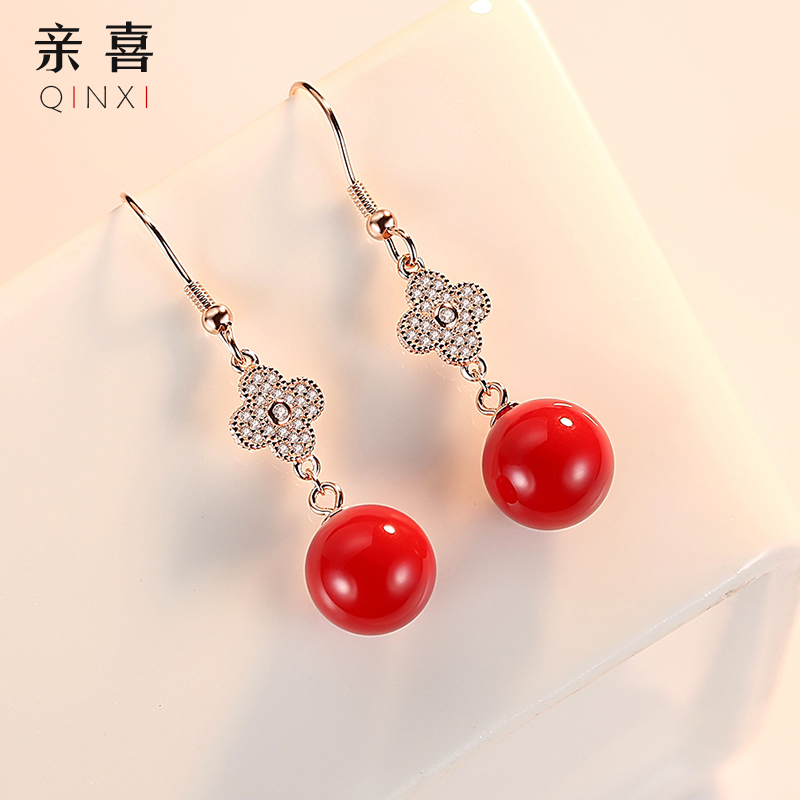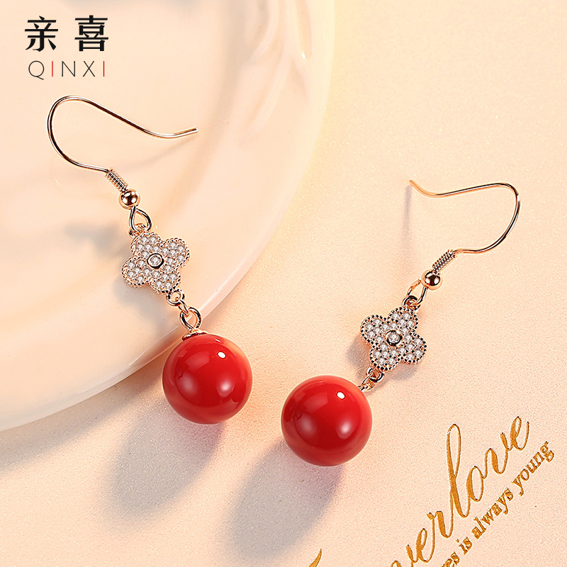 Cherry earrings women's sterling silver temperament Korean temperament net red tide people red earrings super fairy 2021 new trend earrings