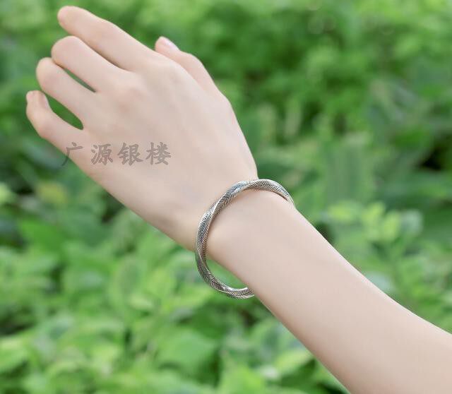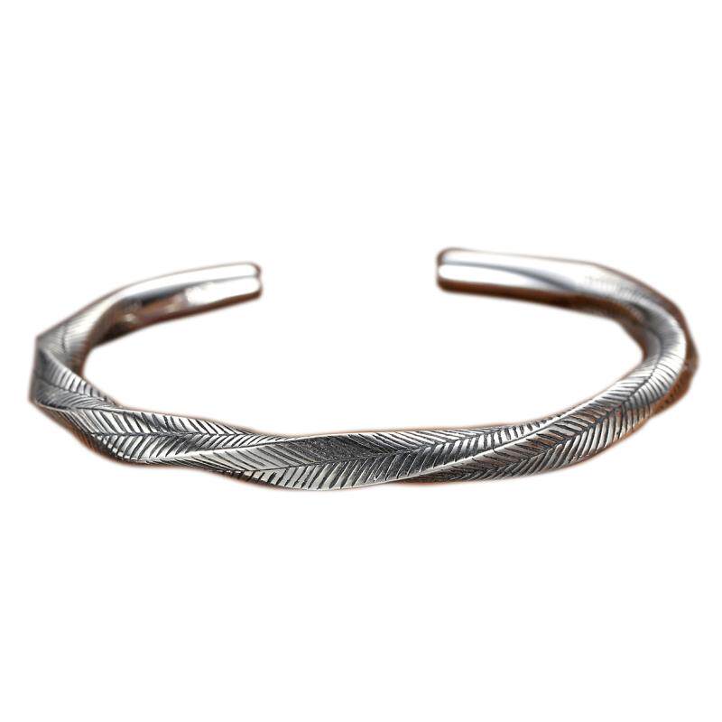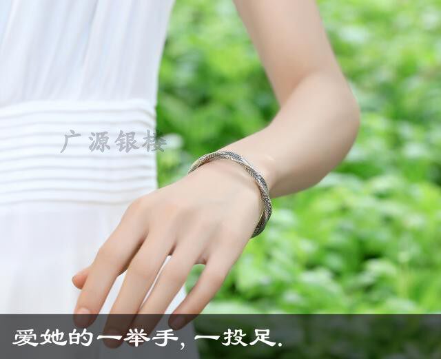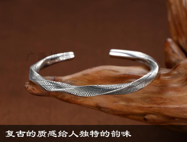 Thai handmade silver 925 pure silver bracelet made of old retro woven hemp flower opening solid bracelet women's silver jewelry