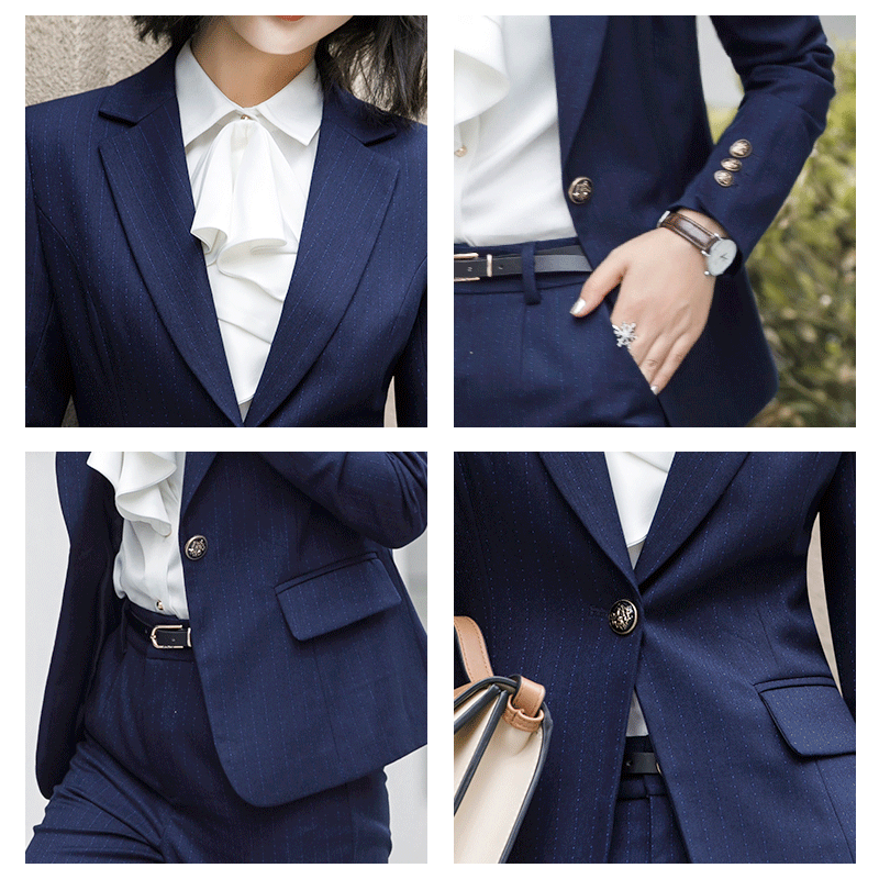 Dark Striped Small Suit Women's Dress Career Suit Skirt Korean version Business Suit Ladies West Suit Fall New Coat Ol