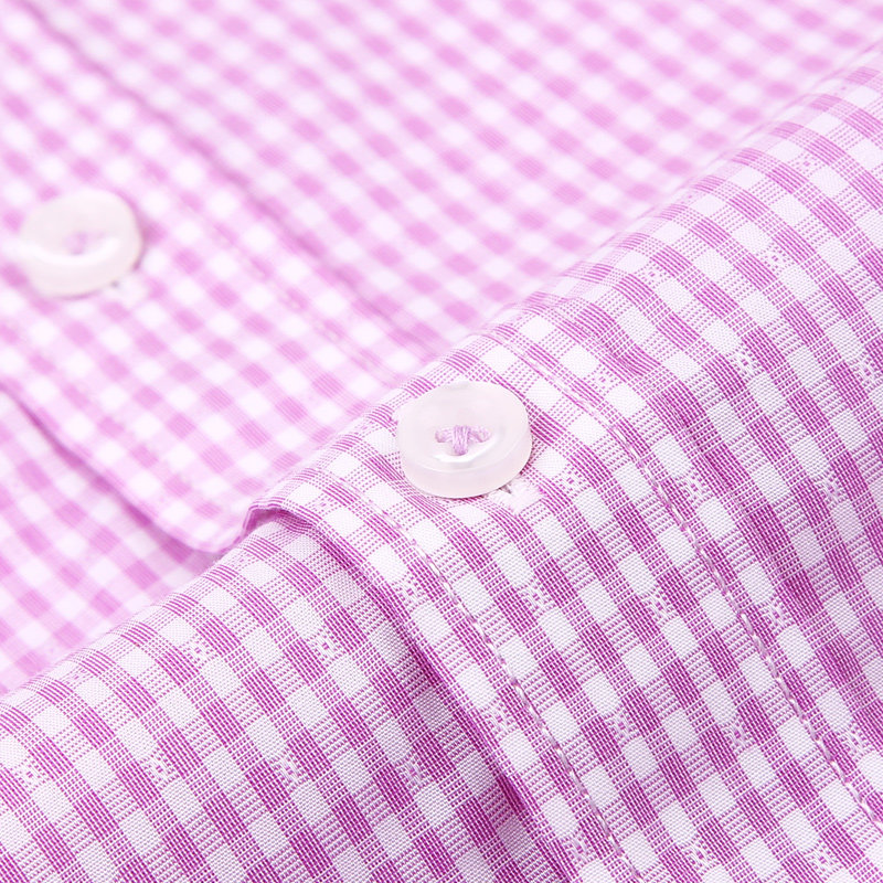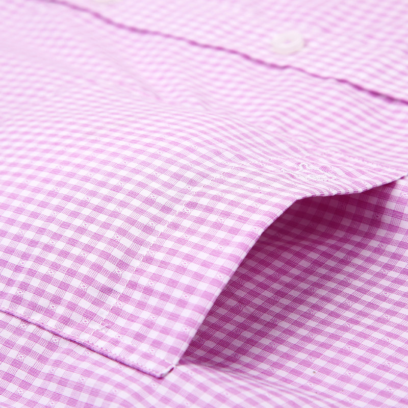 Hengyuan Xiang color sheep men's long-sleeved shirt Pink cotton thin section business casual small checkered plaid cotton shirt