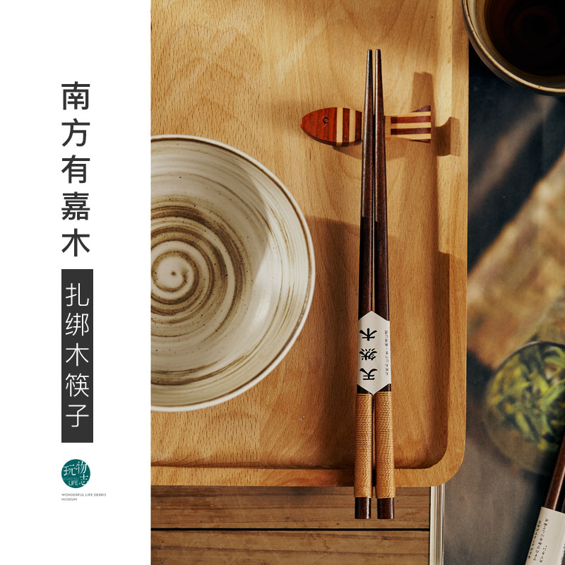Play with objects Zhige Chopsticks Iron Wood Suit Home Thickening Anti-Burn 10 Double Korean Hemp Rope Ztying Solid Wood Chopsticks