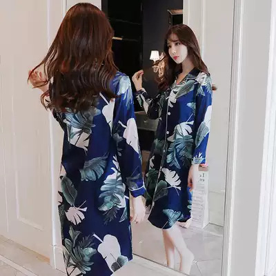 Nightdress Lady Autumn long sexy Ice Silk long sleeve pajamas silk thin Korean sweet spring and autumn home clothes