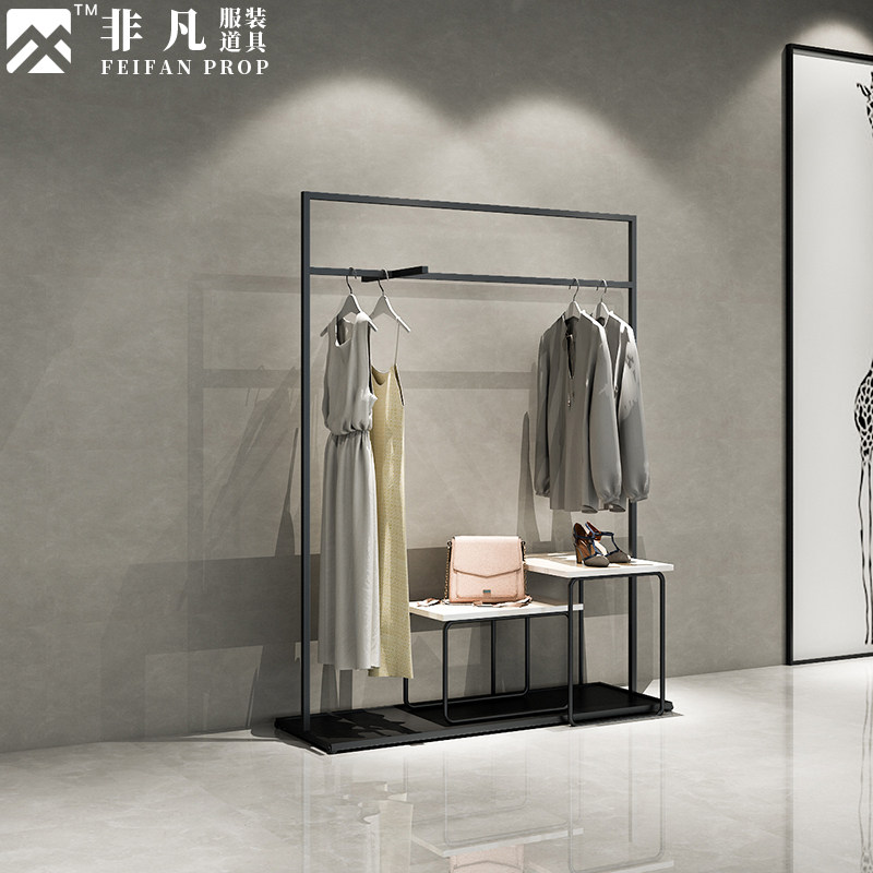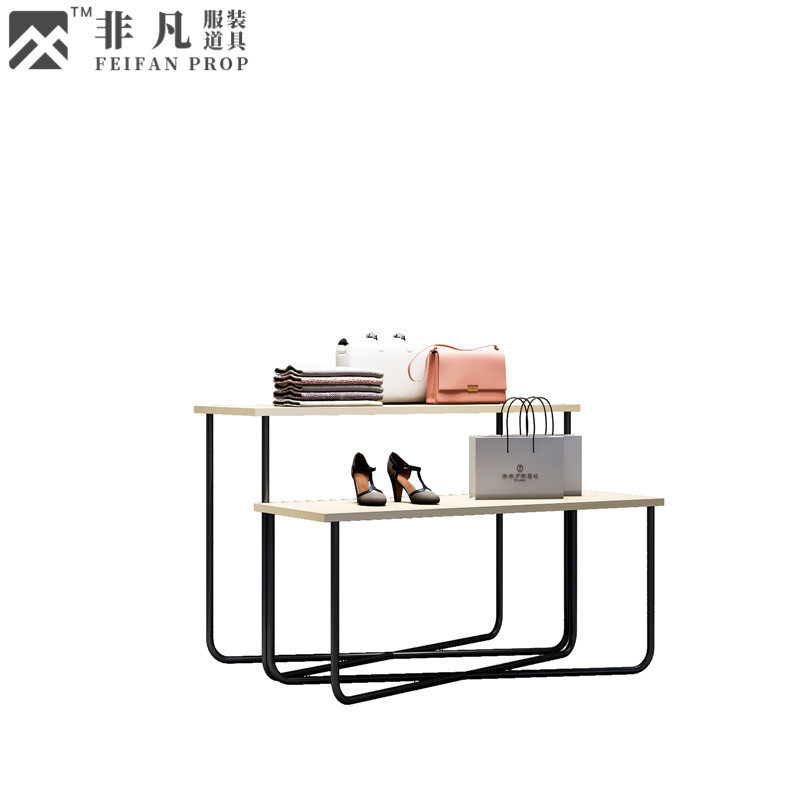 Extraordinary clothing store solid wood high and low table men's clothing store window shoe bag running water table floor-standing middle island display table