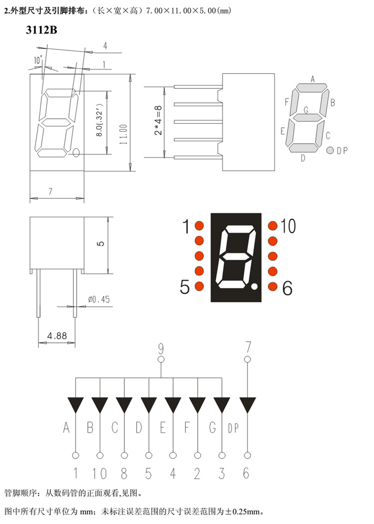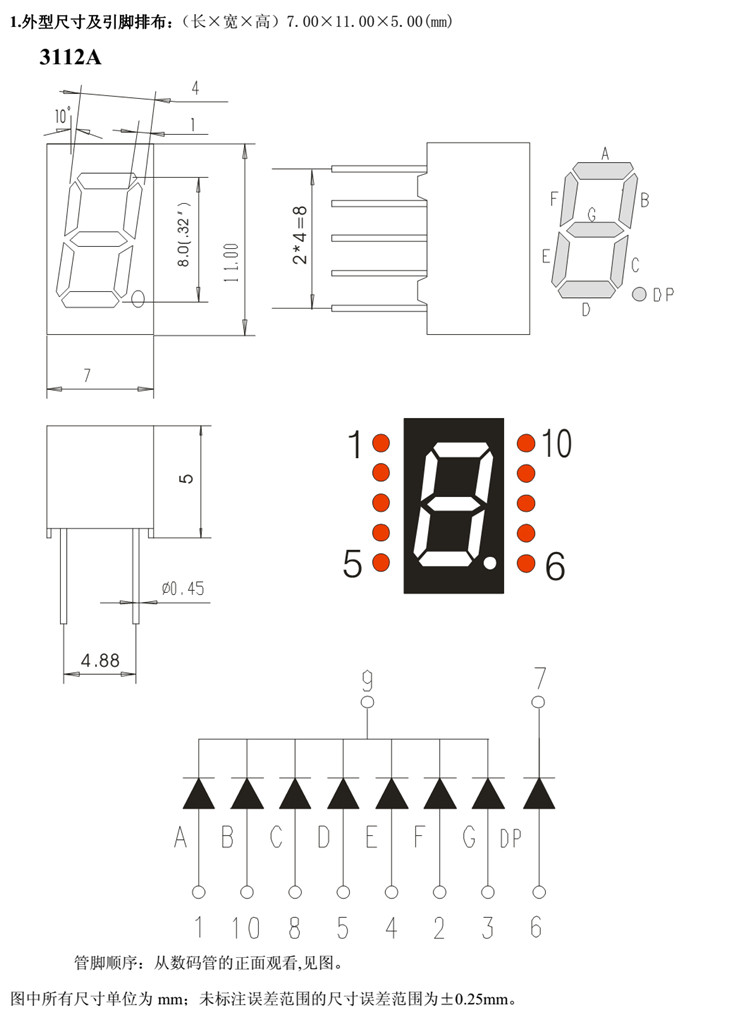0.32 inch unit digital tube total Yin total Yang bright red red light digital tube 3112AS 3112BS