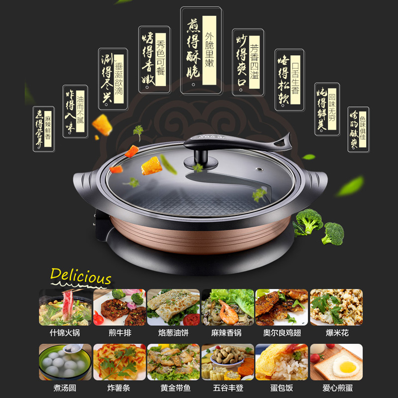 Supoir Electric Cake Pan Electric Cake Stall Home Deepen the Enlarged Electric Hot Pot Barbecue Integrated Pot Multifunction Cuisine Pan