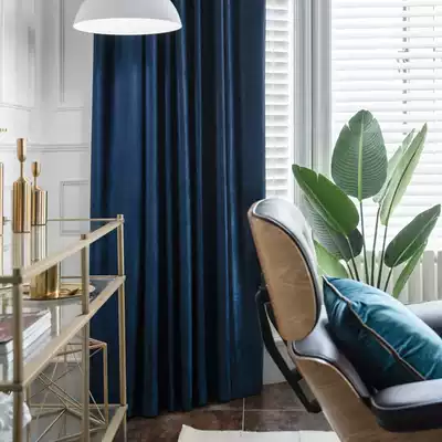 Beijing curtains are customized to do half-shading Dutch velvet modern simple solid color dark blue sea blue living room American light luxury