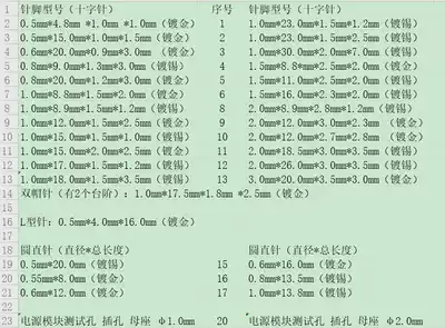 Module power supply pin pin Introducer needle tin 1 0mm * 30 0mm * 2mm * 7mm 100
