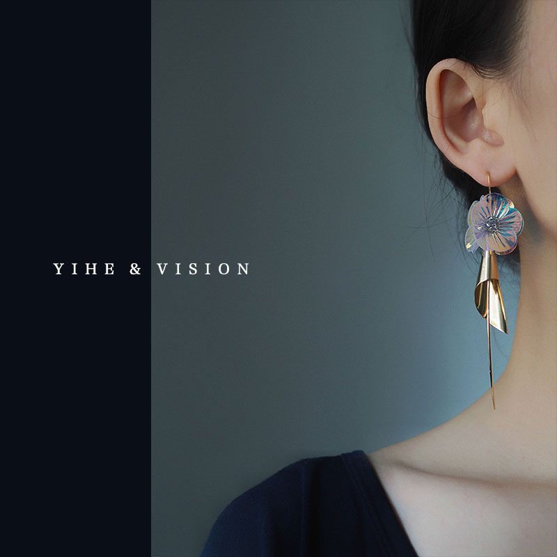 YIHE original design gentle and sweet holiday style personality niche magic color laser flower piece long earrings