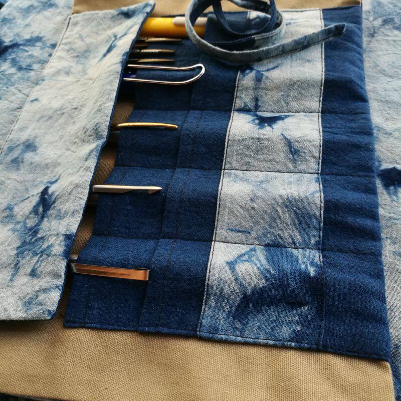 Buyi ancient style pen curtain roll pen bag retro Chinese style pen bag for men and women large capacity simple creative rolling double-layer pen bag