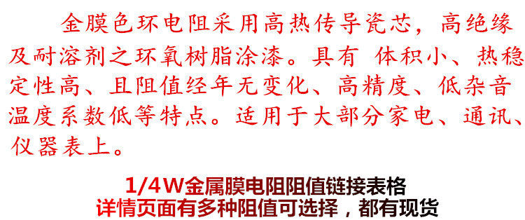 1 4W metal film precision resistance 1% 2R 20R 20R 200R 2K 200K 200K 2M EV color ring resistance