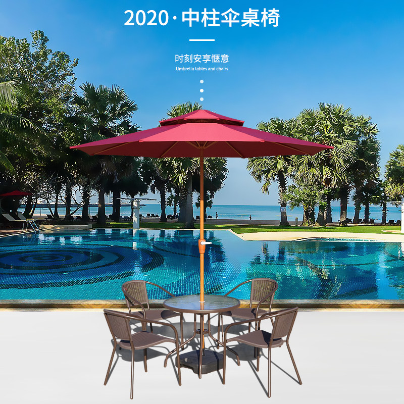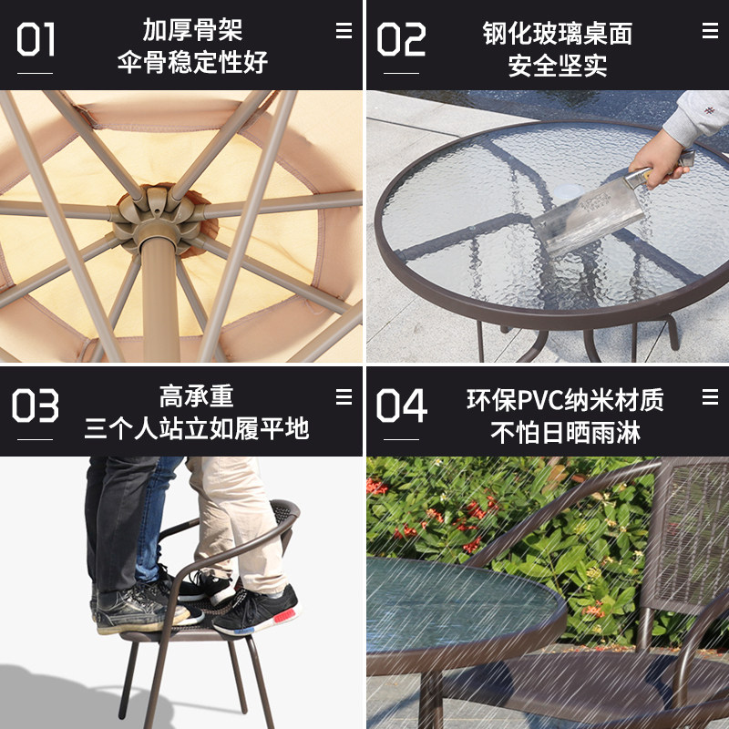 80 water-patterned glass round table + 4 chairs + double top mid-column umbrella umbrella color note