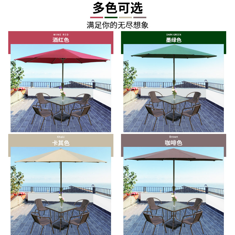 80 water-patterned glass round table + 4 chairs + aluminum mid-column umbrella umbrella color notes